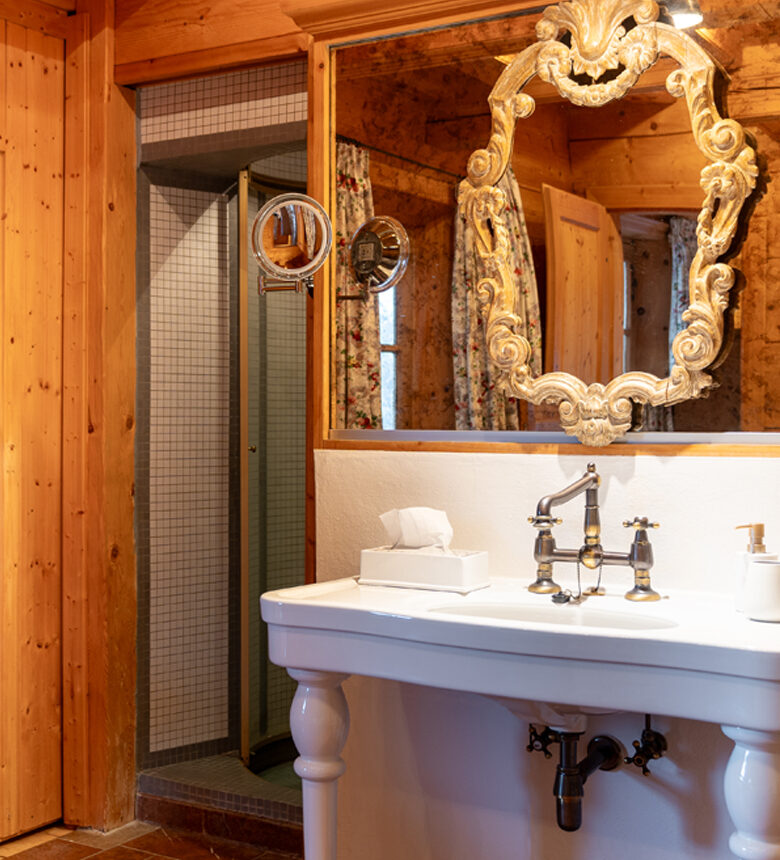 Das alpenländische Chalet Hochalpschwendt zeichnet sich durch seine authentische Tyroler Architektur aus: im Erdgeschoss dicke Steinmauern, die im Sommer für angenehme Kühle sorgen, im Obergeschoss gemütliche, handgefertigte, massive Holzbauweise. Alles mit Materialien, die von der umgebenden natürlichen Umgebung inspiriert sind.